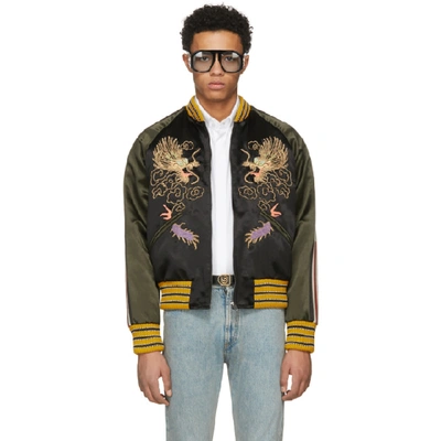 Gucci Dragon Embroidered Silk Bomber Jacket in Green for Men Lyst