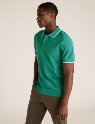 Pure Cotton Pique Tipped Polo Shirt M S Collection M S